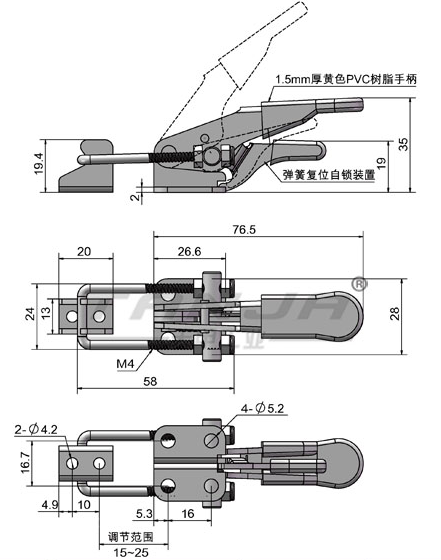 U型螺桿可調(diào)節(jié)安裝距離和緊固松緊度