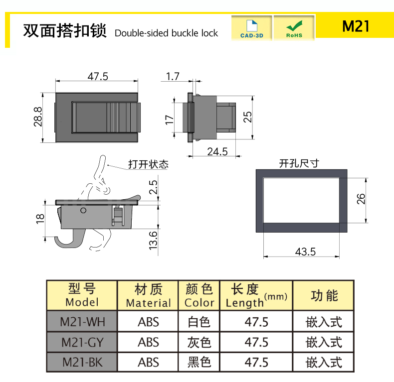 微型平面鎖,適合更小空間使用,結構簡單,開閉方便