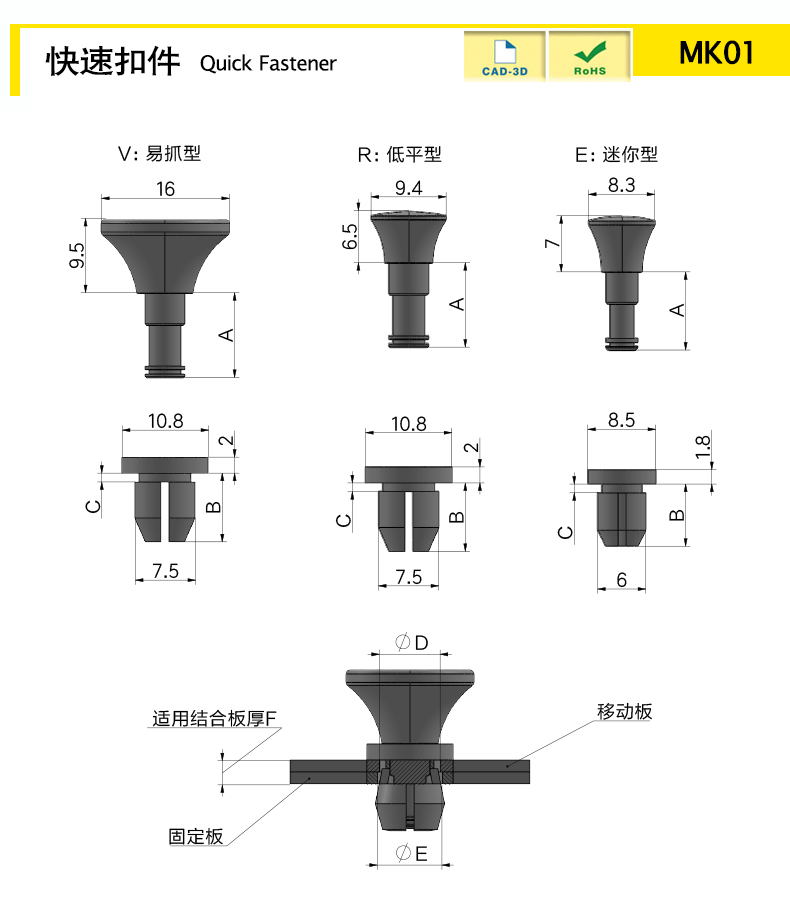 | MK01-V-0BK | NYLON66 | 1 | 黑色 | 10.6 | 8.6 | 1.1 | 7.6 | 8.1 | 1.5~3.7 | 易抓型 | 下載 | ||||