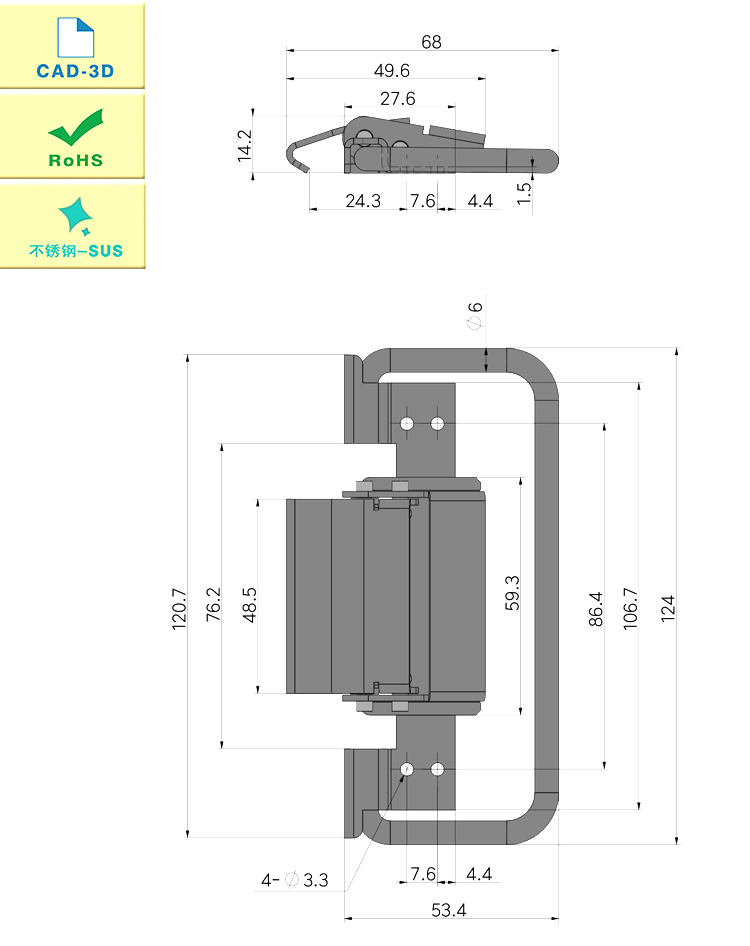 快速使用,搭扣與把手一體式設(shè)計,可同時取放打開。