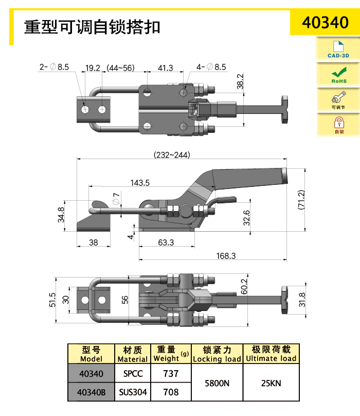 帶自鎖機(jī)構(gòu),按壓閉合搭扣可形成自鎖,防止意外彈開