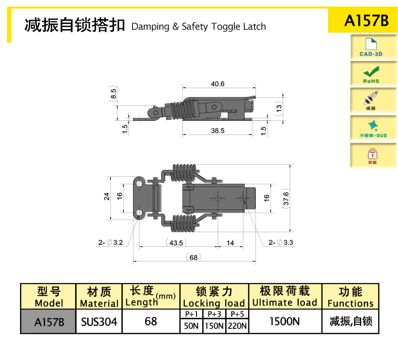 自鎖裝置可實(shí)現(xiàn)自鎖功能,具有可靠的安全性,搭扣不會因振動松脫
