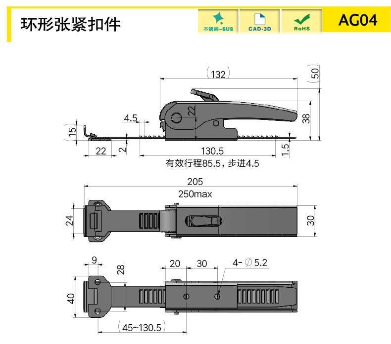 2.可調(diào)行程85.5mm,可用于更大的鎖緊距離