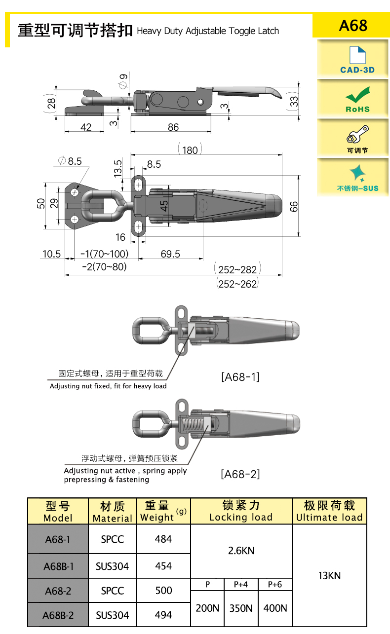 | A68-1 | 300 | SPCC | 484.27 | 2600 | 13000 | 可調(diào)節(jié),帶鎖 | 下載 | ||||