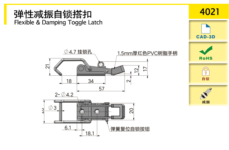 弧形彈簧鋼線使搭扣具有彈性預(yù)壓力,并具有減振功能