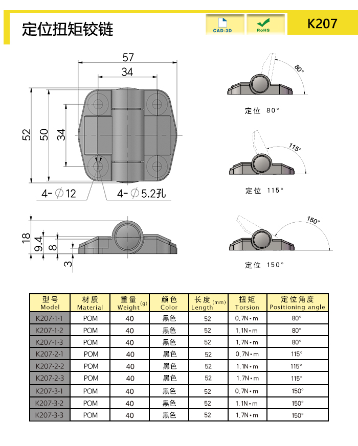 | K207-3-3-BK | POM | 52 | 黑色 | 39.01 | 固定扭矩,角度定位 | 下載 |
