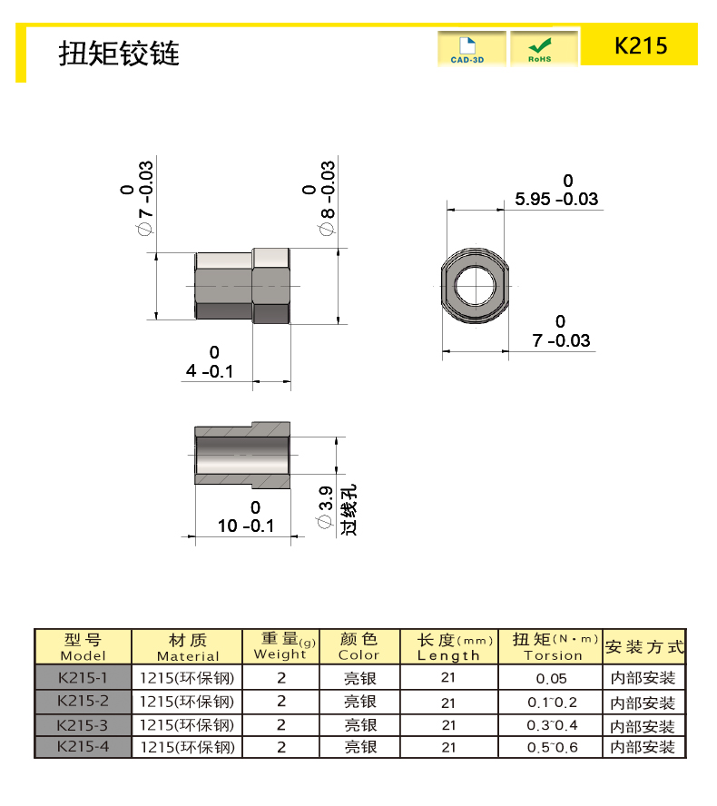 使用壽命:開合5000次扭矩衰減15%