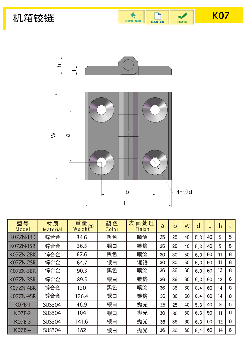 | K07ZN-4SR | 鋅合金 | 60 | 銀白 | 126.41 | 輕載 | 下載 | ||||