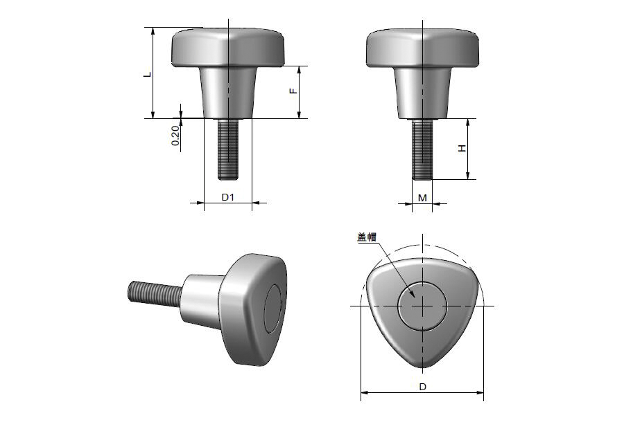 | 型號 | 材質(zhì) | 直徑D | D1 ![]() | M ![]() | F ![]() | 高度H ![]() | 特點 | 重量(g) | 3D圖紙 | 選購 | |||