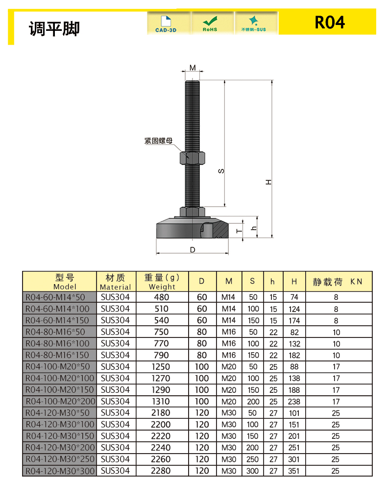 | R04-100-M20-150 | SUS304 | 100 | M20 | 150 | 188 | 25 | 1 | 17 | 下載 | ||||