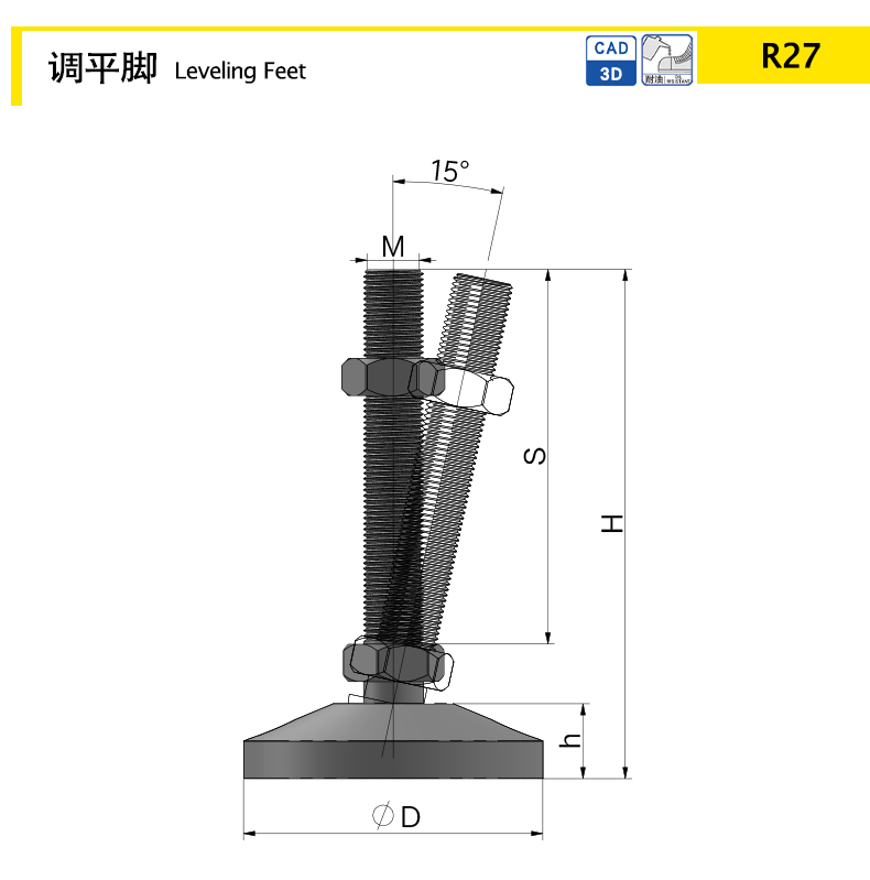 螺桿提供15度萬向調(diào)整,解除角度公差,使機器設(shè)備平穩(wěn)度更佳