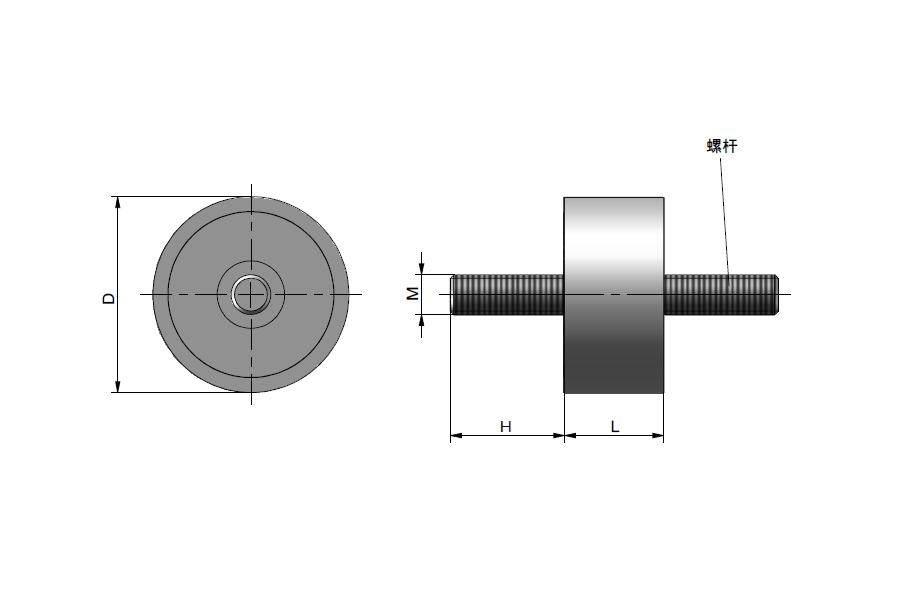 | 型號 | 材質(zhì) ![]() | 重量(g) | 直徑D ![]() | 長度L ![]() | 高度H ![]() | M ![]() | 最佳壓縮量(mm) ![]() |