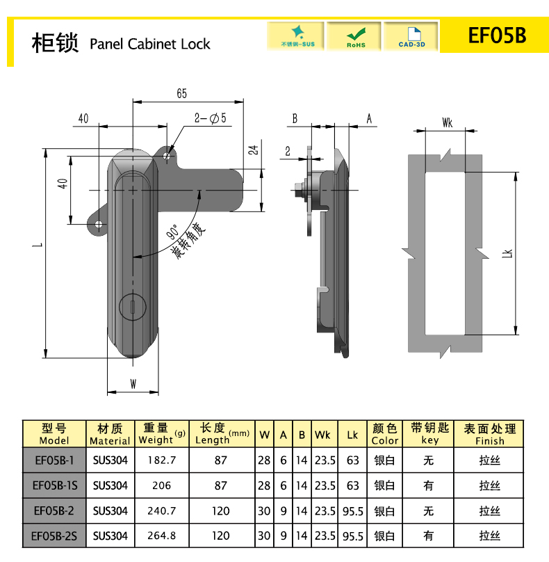 結構功能:手柄向上打開,帶動鎖片90°旋轉實現(xiàn)開啟。