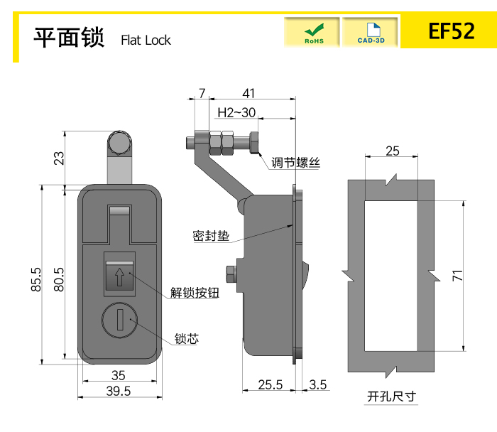 調(diào)節(jié)螺釘可適用不同的鎖止范圍